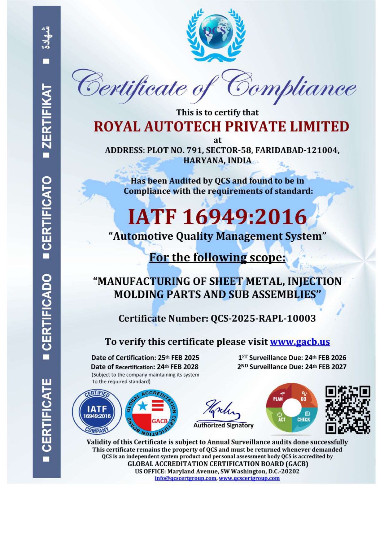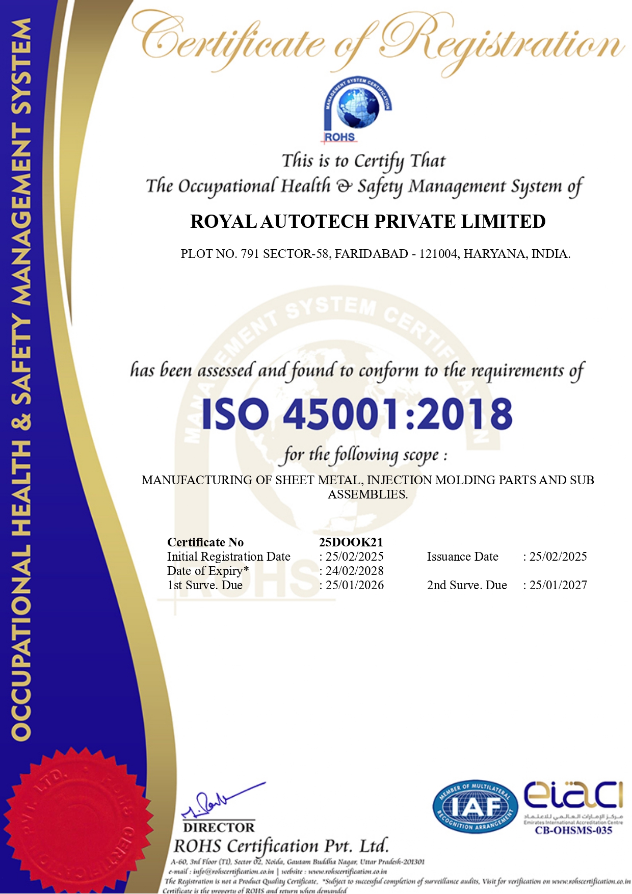 Royal Group India is a leading supplier of automotive sheet metal and tubular components, and has a strong presence in the country in various industry segments. Royal Group India set up its manufacturing operations in 1975 by Mr. V.K.Marwah, and has grown over the years to 4 manufacturing sites in Faridabad region and a development center in Manesar for manufacturing of automotive sheet metal and tubular components .